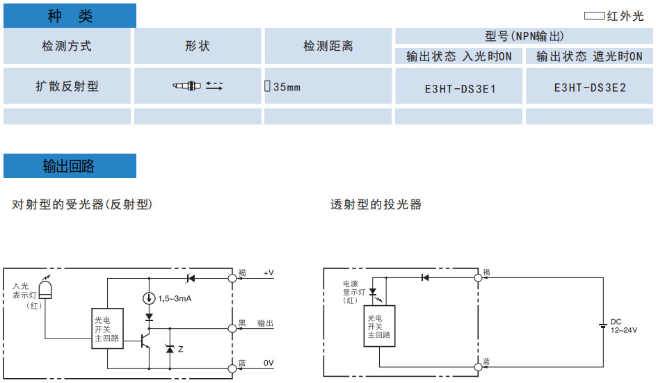 E3HT系列M8正方向柱形光電開(kāi)關(guān)